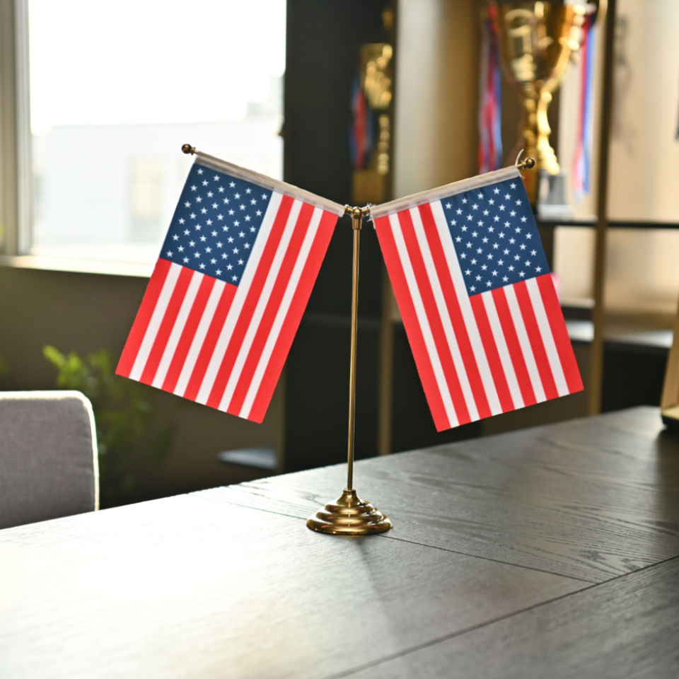 Support de drapeau de table personnalisé 14*21 en acier inoxydable pour bureau, mini bannière décorative d'intérieur, vente en gros