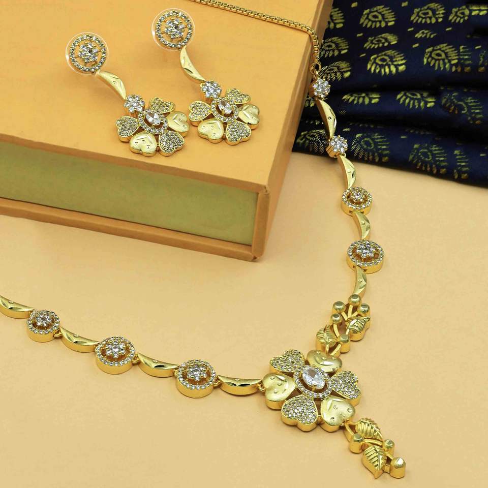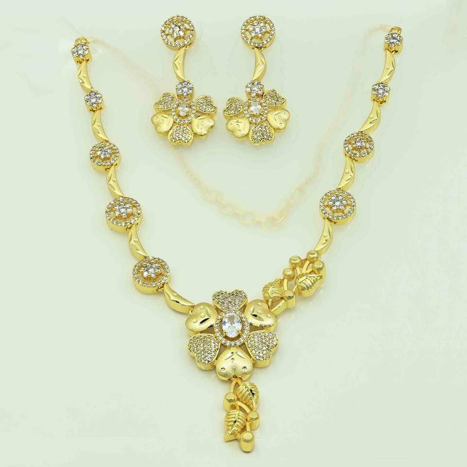 14K 18K 24K Micro Gold Plated Forming AD Stone Necklaces SetNecklaces Type