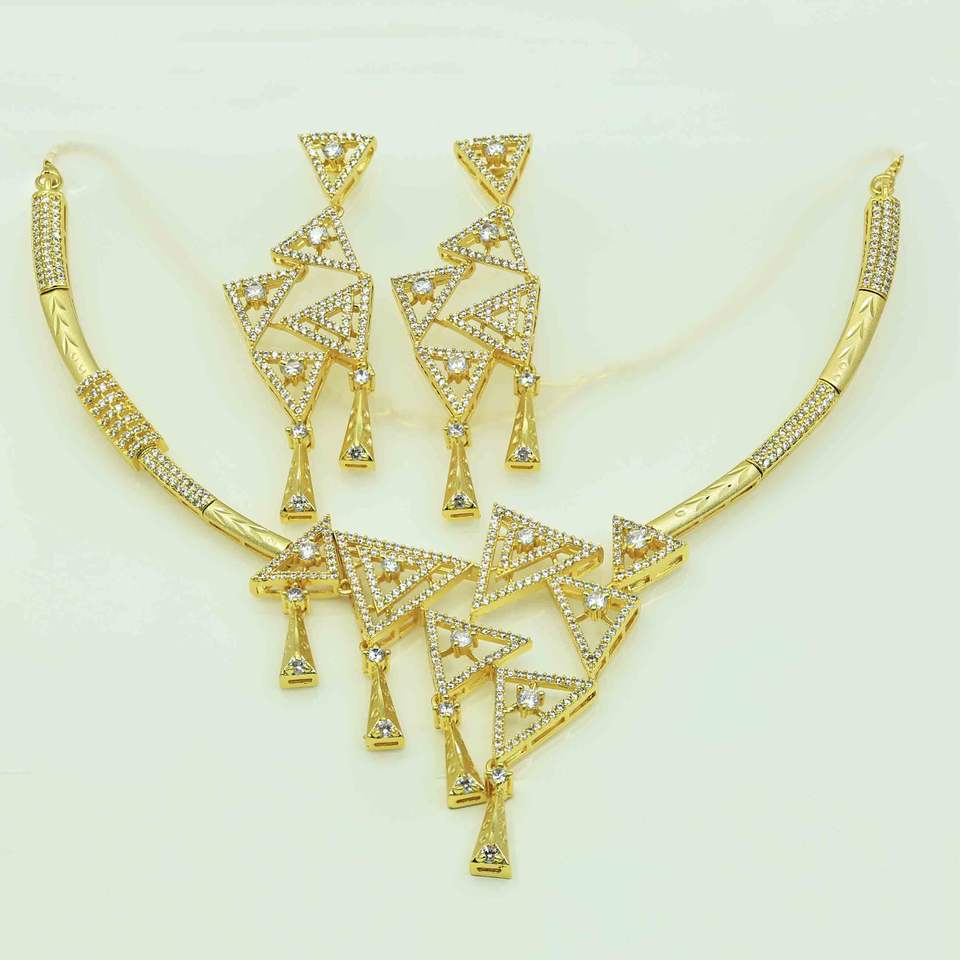 14K 18K 24K Micro Gold Plated Forming AD Stone Necklaces SetNecklaces Type