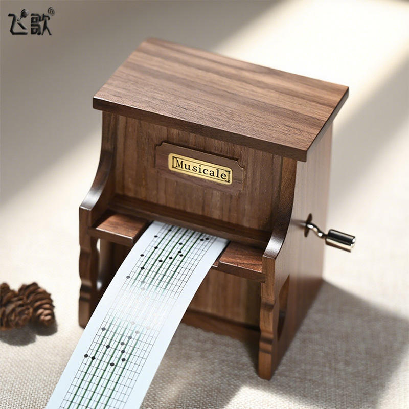 Vente en gros de 15 notes de composition de ruban de papier à manivelle Piano droit Boîte à musique DIY Noyer Vintage Boîte à musique en bois
