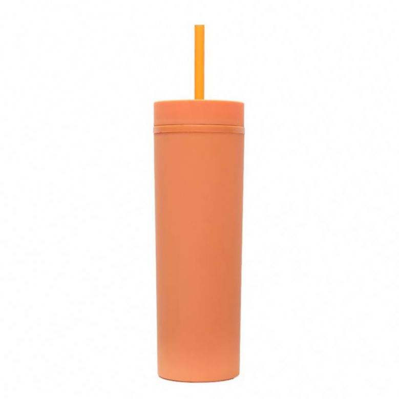 Wholesale 16Oz Straight Skinny Double Wall Plastic Tumbler Cup Custom Reusable With Lid Straw American Style Design for Camping