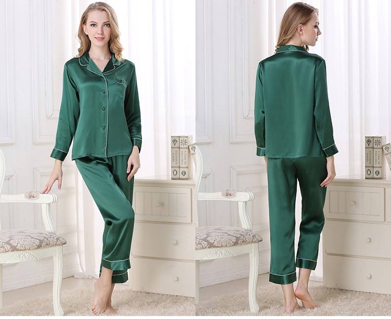Vente en gros de pyjamas en satin de soie de printemps de 16mm de long élégants pyjamas pour femmes de taille plus au genou 100% soie teinte unie respirante