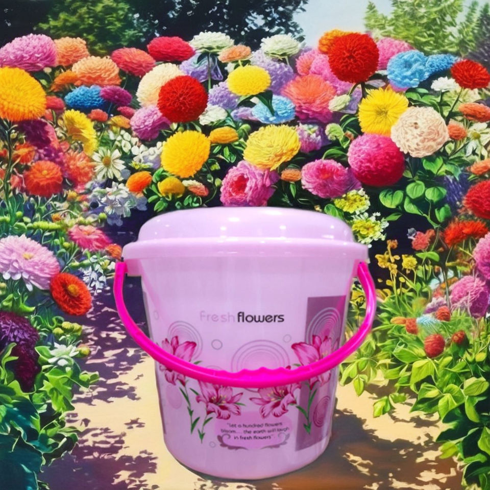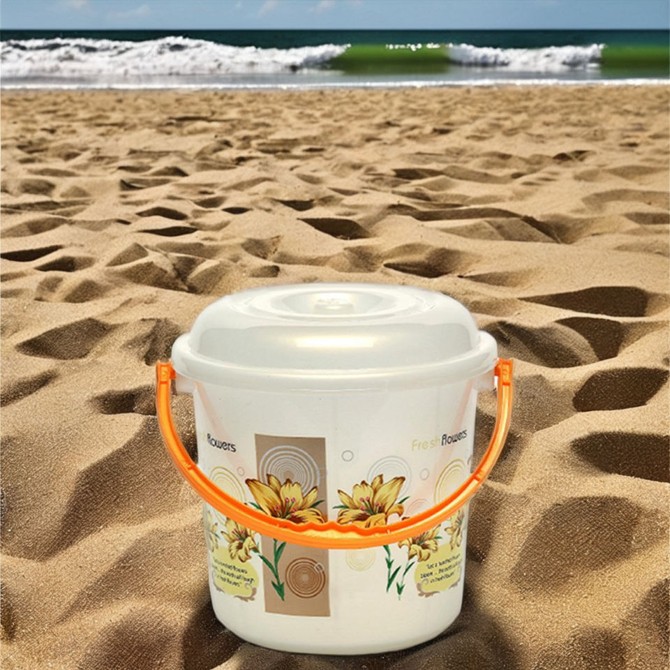 Seau en plastique PVC de 18 litres à motif marguerite avec couvercle, étanche, écologique et au design élégant pour usage en gros