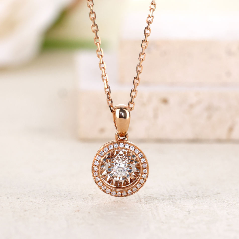 Vente en gros d'or massif 18 carats véritable bonne qualité diamant naturel forme ronde beau pendentif pour petite amie cadeau d'anniversaire usage quotidien