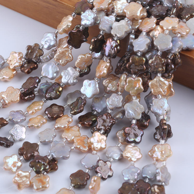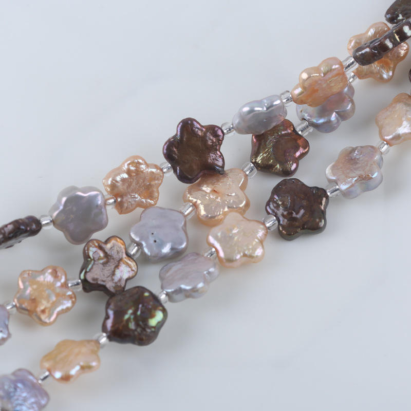 Wholesale 18cm 11-13mm Freshwater Aquaculture Alien Baroque Pearl String White Plum Blossom Shaped Loose Pearls for DIY