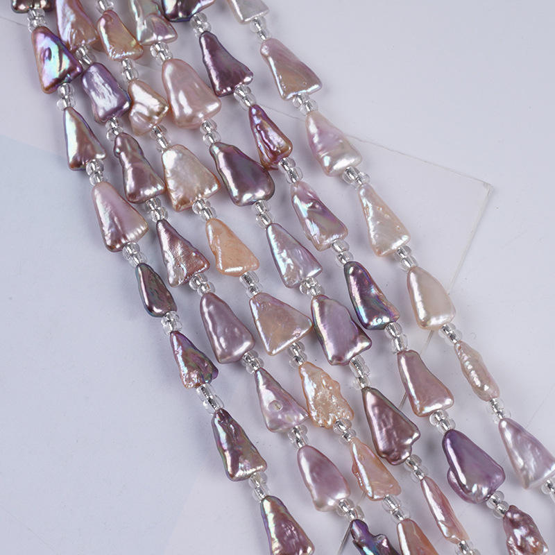 Vente en gros de perles d'eau douce naturelles de 18 cm, collier de perles DIY, forme triangulaire baroque, blanc, rose naturel, teinte violette, perles en vrac