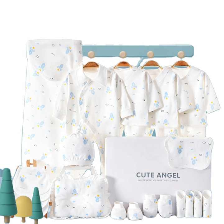 Vente en gros 19pcs 24pcs Ensemble cadeau solide pour nouveau-né naissance de bébé Vêtements pour bébé Coffret cadeau pour bébé 100% coton Ensemble cadeau pour bébé