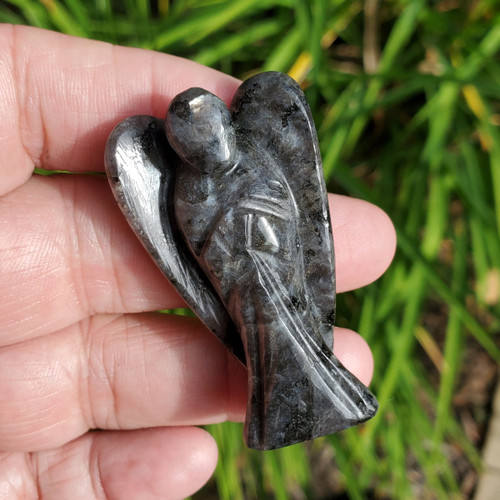 Vente en gros de 2 pouces de larvikite naturelle sculptée anges cristal semi-précieux Figurines de pierres précieuses cadeaux spirituels Feng Shui