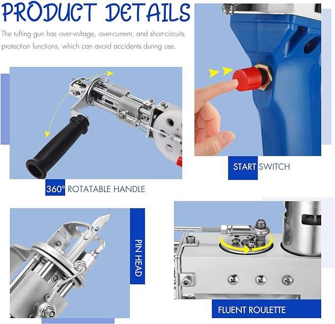 Vente en gros 2-en-1 Kit de mitrailleuse à touffeter en boucle coupée bleu Tension universelle Noyau de moteur de haute qualité pour tapis/tapis/tapis pour animaux de compagnie