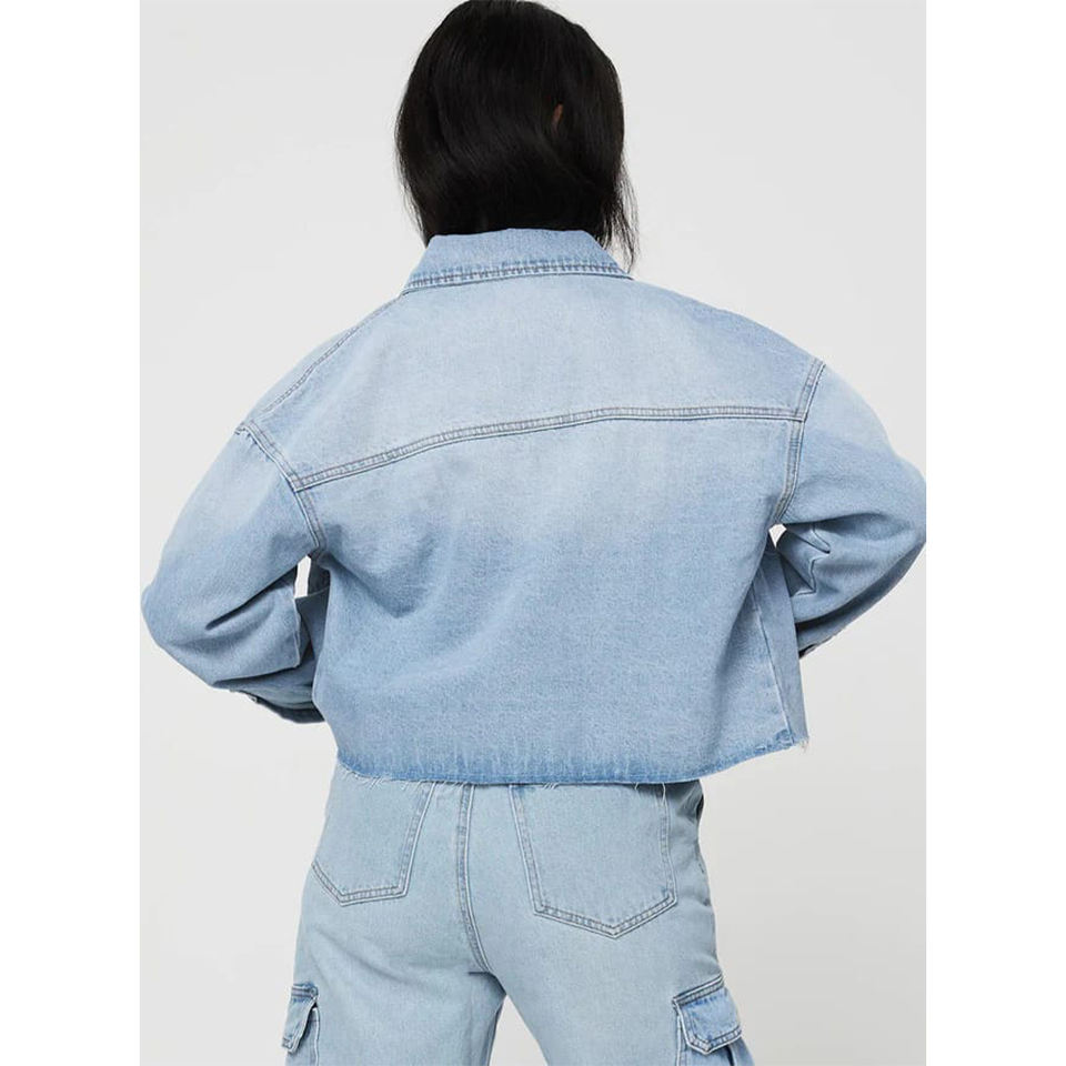 Vente en gros 2024 Couleur personnalisée Logo imprimé Street Wear Veste en jean Veste en coton au design solide et élégant pour les femmes Service OEM