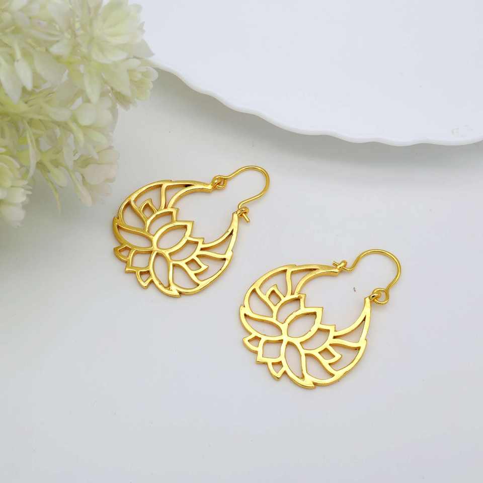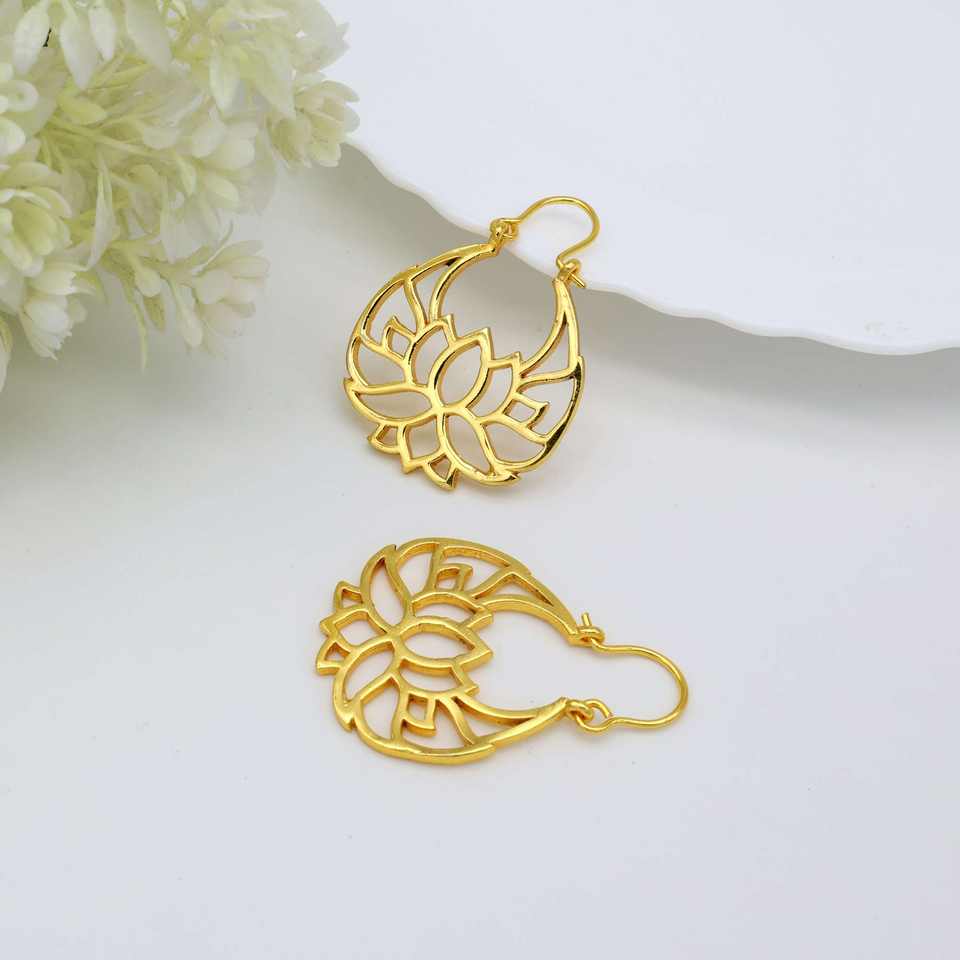 Wholesale 2024 Women's 18K Gold Plated Brass Flower Dangle Earrings Hollow Lotus Yoga Buddhism Jewelry Gift Fashion Earrings