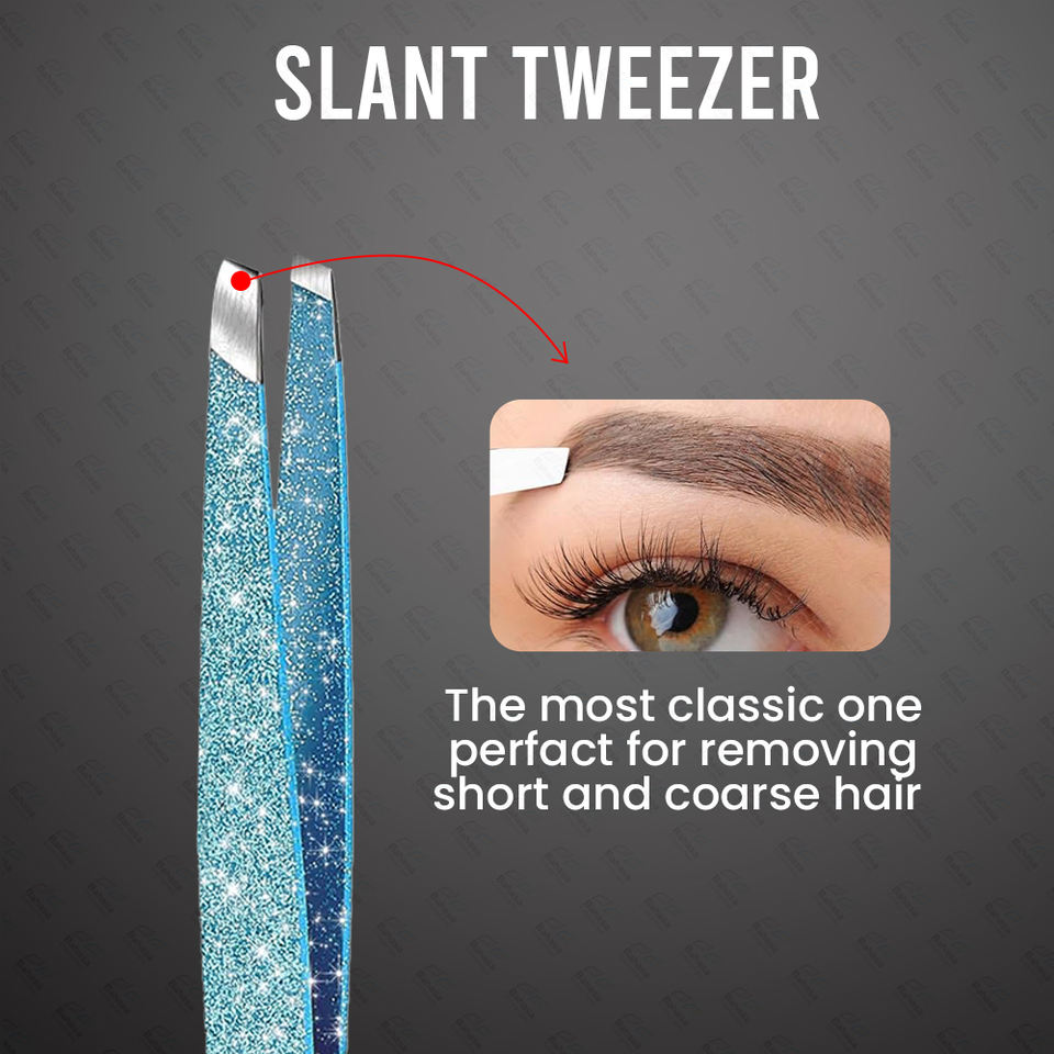 Wholesale 2025 Slanted Tweezers Eyebrow Trimming Plucking Pliers Set Private Label False Eyelash Tools Pointed Tip Beauty Bag