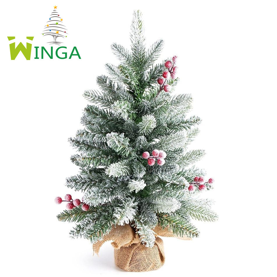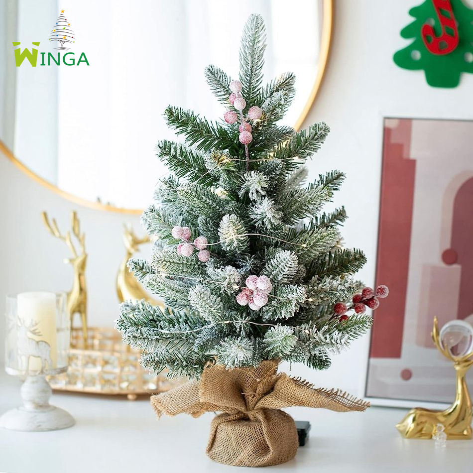 Vente en gros de mini sapin de Noël artificiel floqué de 20 pouces avec LED, petit sapin de Noël avec support pour décoration intérieure