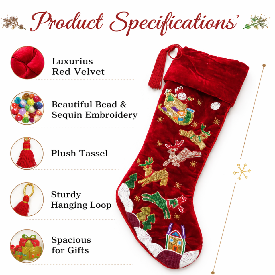Product Name:22 Inch Luxury Velvet Christmas Stocking with Gold Embroidery