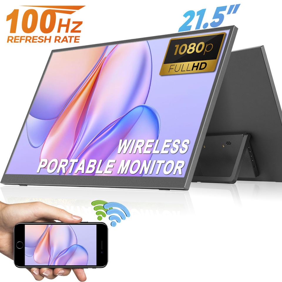 Moniteur de jeu LCD IPS sans fil WiFi 23,8 pouces 1080P HDR 100Hz, double écran portable pour ordinateur portable avec VESA, vente en gros