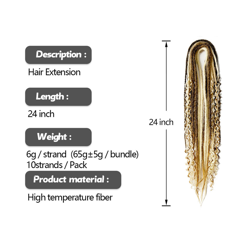 Nom:Double Ended 2 en 1 Mixte Dreadlock Extensions Ensembles