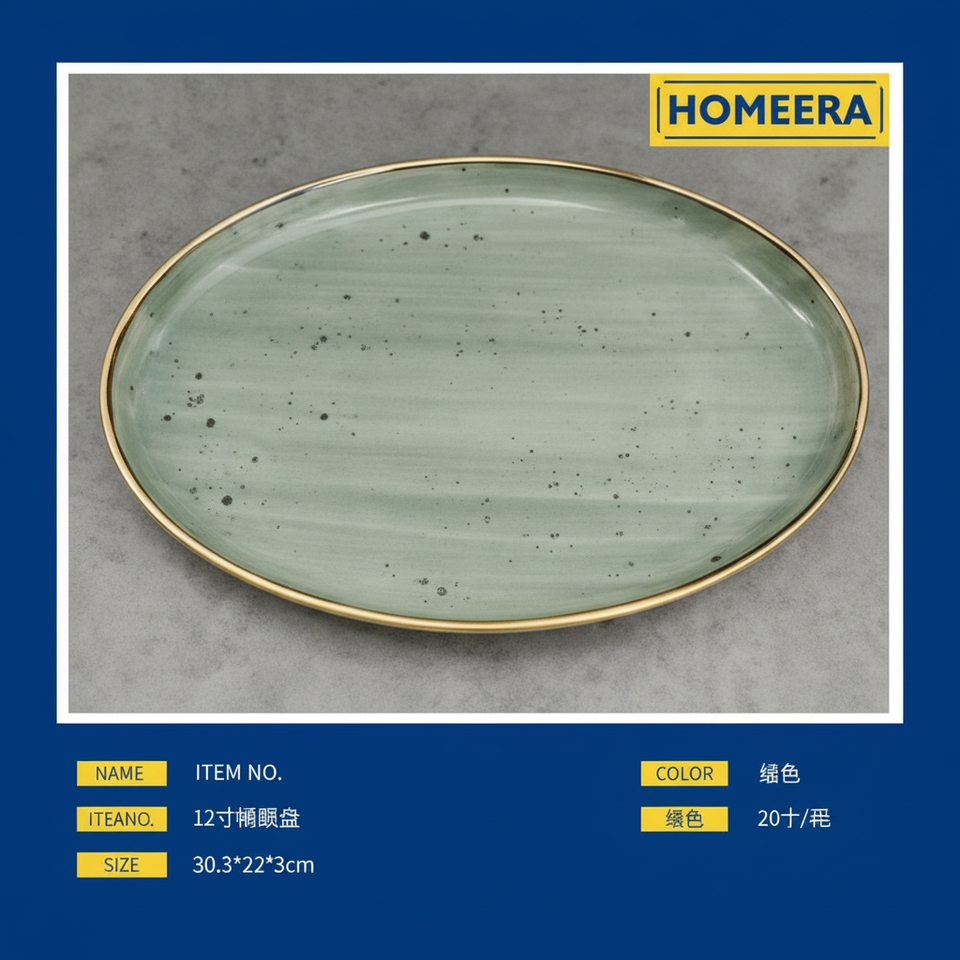Assiettes à dîner ovales en porcelaine de 12 pouces 305x22x3cm 956g motif personnalisable pour les hôtels et les anniversaires Vente en gros 24 pièces par boîte
