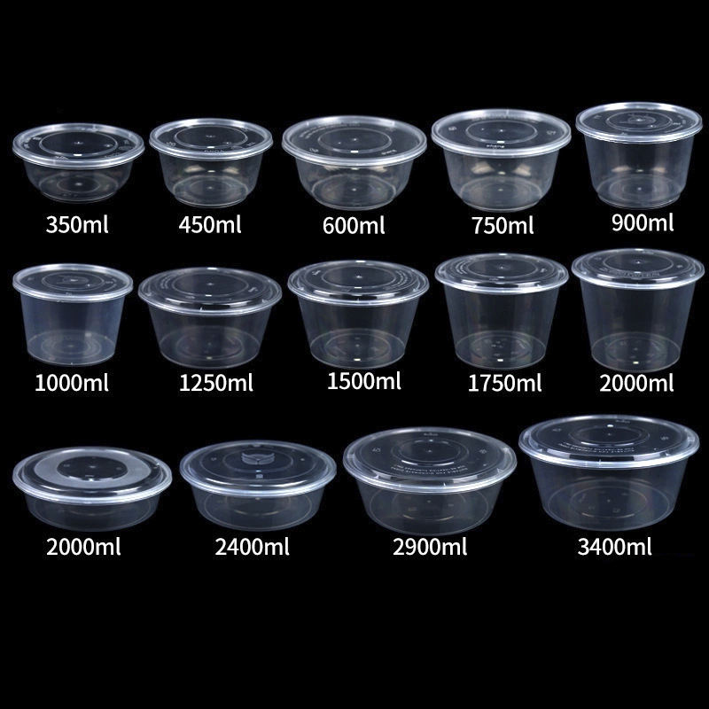 Vente en gros de 25 oz 750 ml bol à soupe jetable noir récipient de stockage des aliments bol de forme ronde en plastique PP avec couvercle
