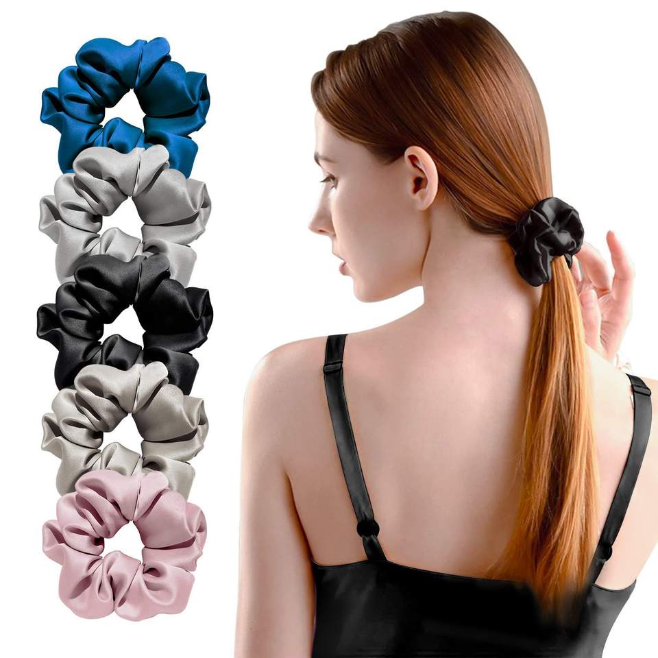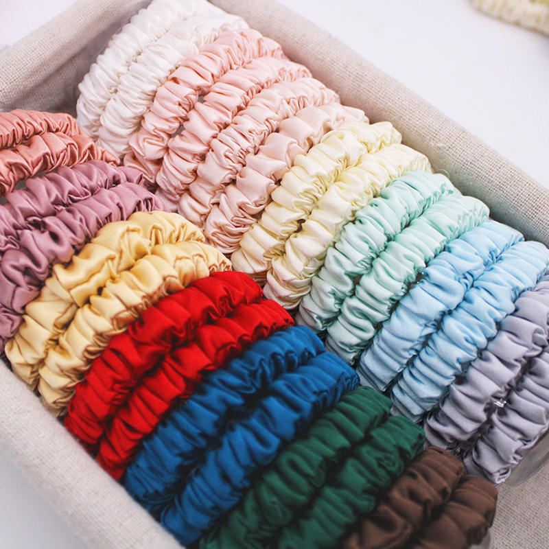 Vente en gros de chouchous moyens surdimensionnés en soie de 3.5cm 100% ensemble d'accessoires pour cheveux personnalisés en soie de mûrier rose chouchou