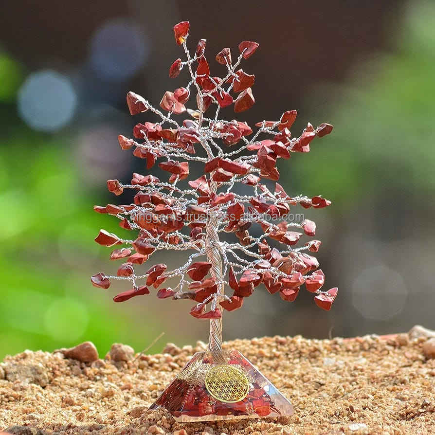 Type:ORGONE PYRAMID BASE RED JASPER 300 CHIPS TREE