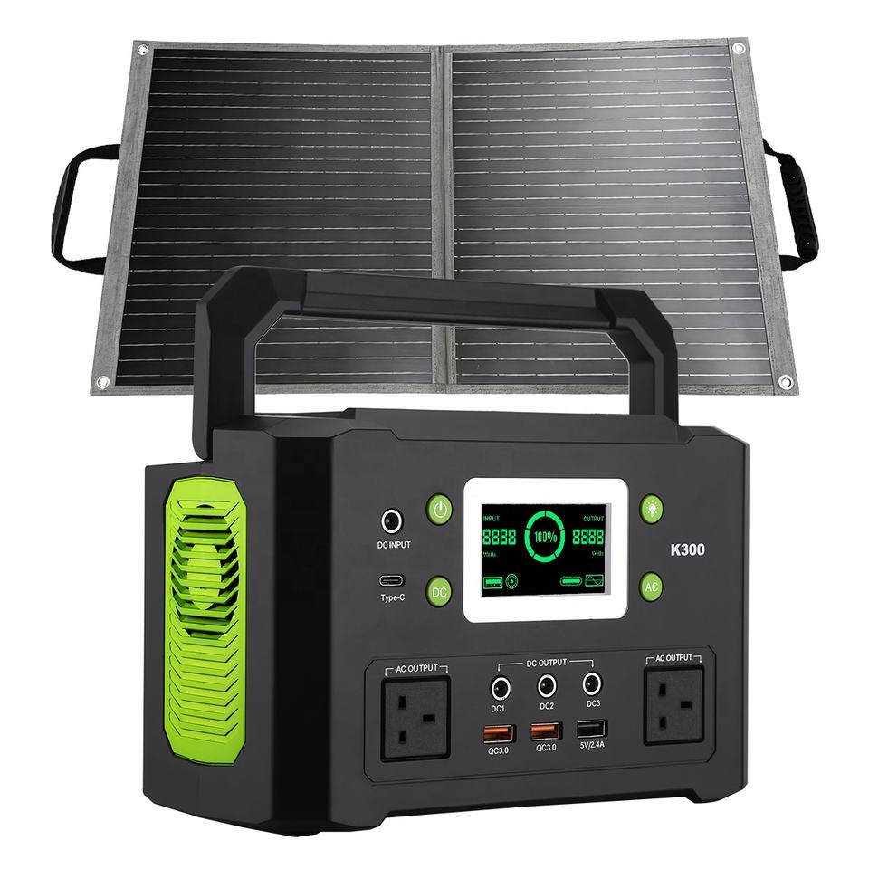 Wholesale 300W Portable Solar Power Station Lithium Ion Battery AC Foldable Solar Panel 60W Kit for Outdoor Camping Charging