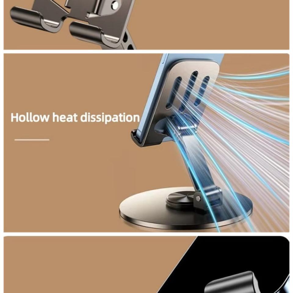 Vente en gros 360 ° Support de téléphone portable en métal rotatif, stable, portable et pliable pour bureau
