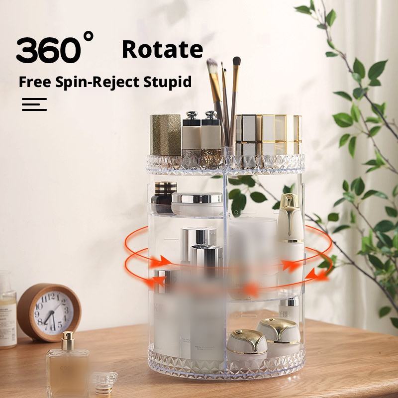 Vente en gros 360. Boîte de rangement cosmétique transparente rotative pour le bureau, la table de maquillage, les produits de soin de la peau, les rouges à lèvres, les pinceaux
