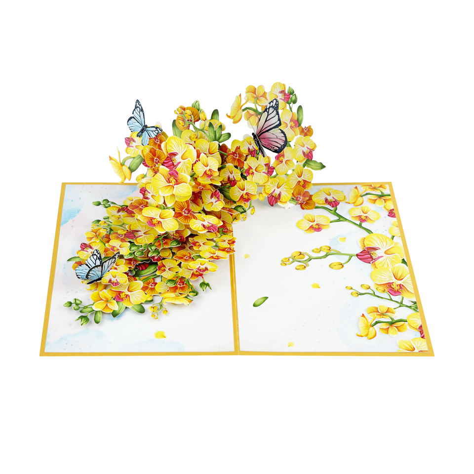 Name:Yellow Orchids with Butterflies Pop Up Card