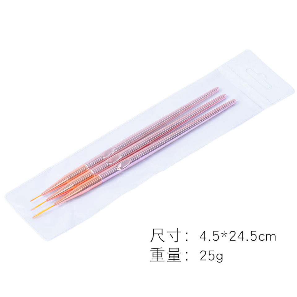 Wholesale 3pcs/set Rose Gold Plated Acrylic Nail Art Line Pen UV Gel Brush for French Stripe 3D Tips Drawing Mixing Manicure