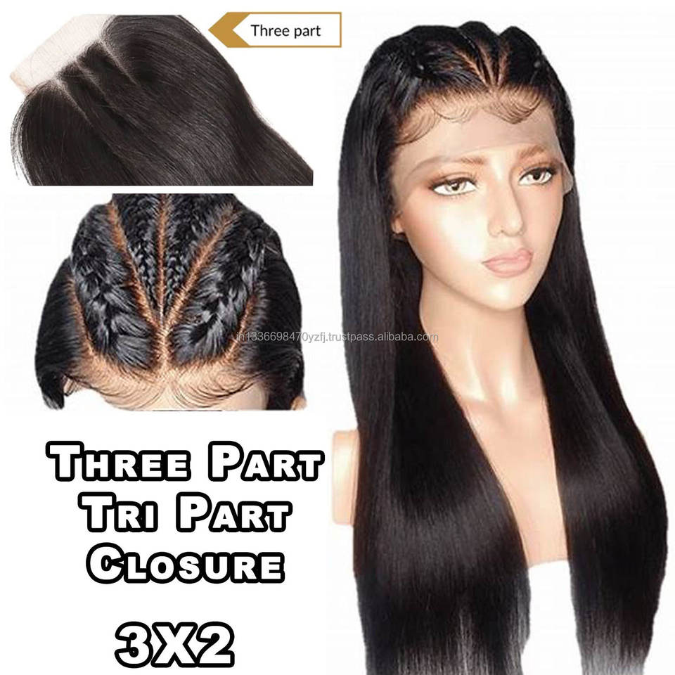 Vente en gros 3x2 fermeture Tri Partition cheveux indiens bruts Remy perruque de haute qualité couleur naturelle trois parties franges