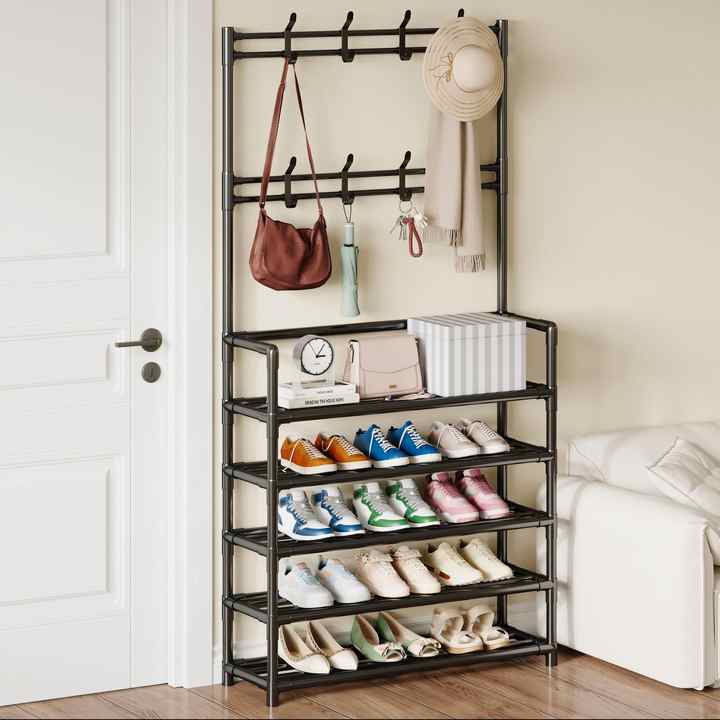 Support de rangement à chaussures en métal multi-usages à 4/5 niveaux avec crochets pour entrée et chambre, idéal pour chaussures, chapeaux et sacs - Vente en gros