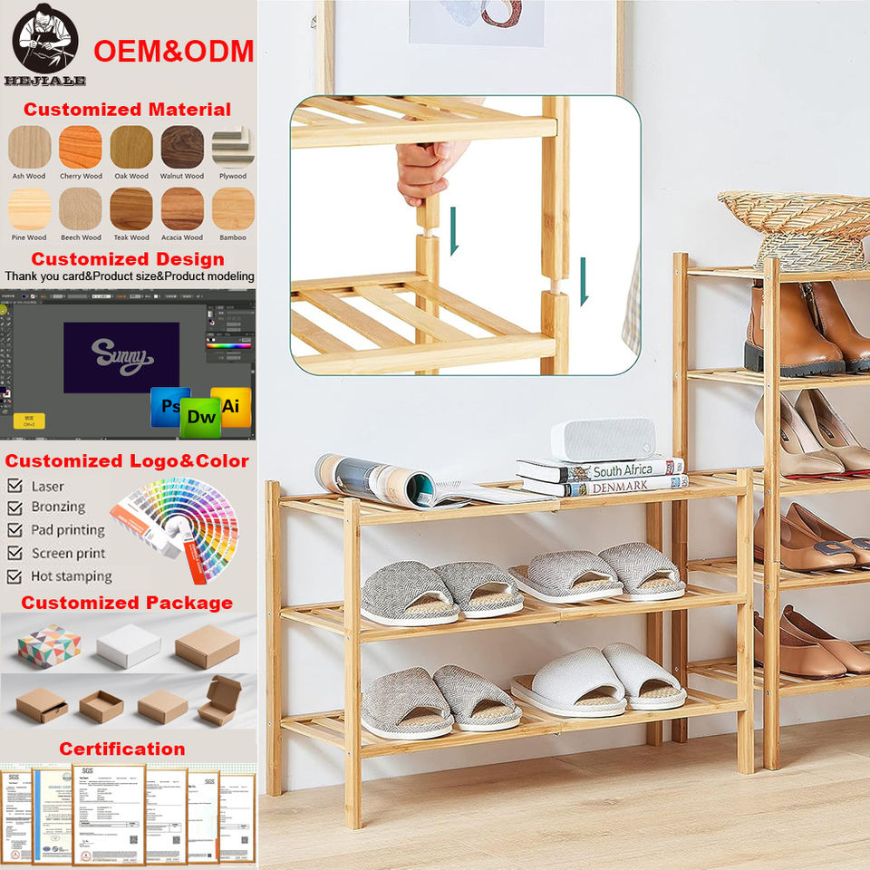 Supports de rangement à chaussures empilables verticaux à 4 niveaux en bambou pour petits espaces, organisateur de chaussures pour placard, entrée, coin - Vente en gros