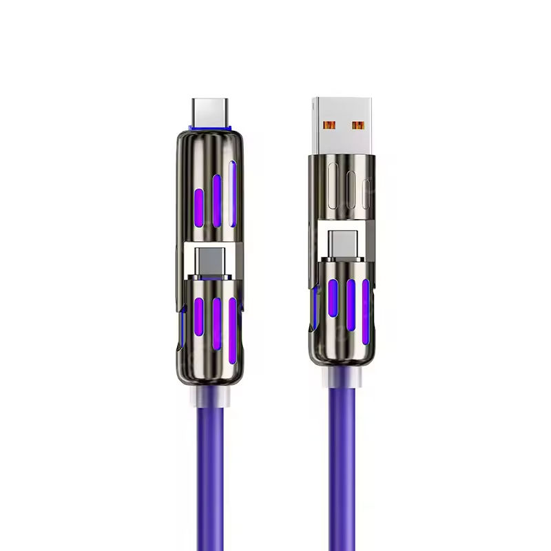 Câble de charge rapide multifonction 4 en 1 240W en matériau TPE avec lumière LED et ports USB multiples Type C pour téléphone portable (vente en gros)
