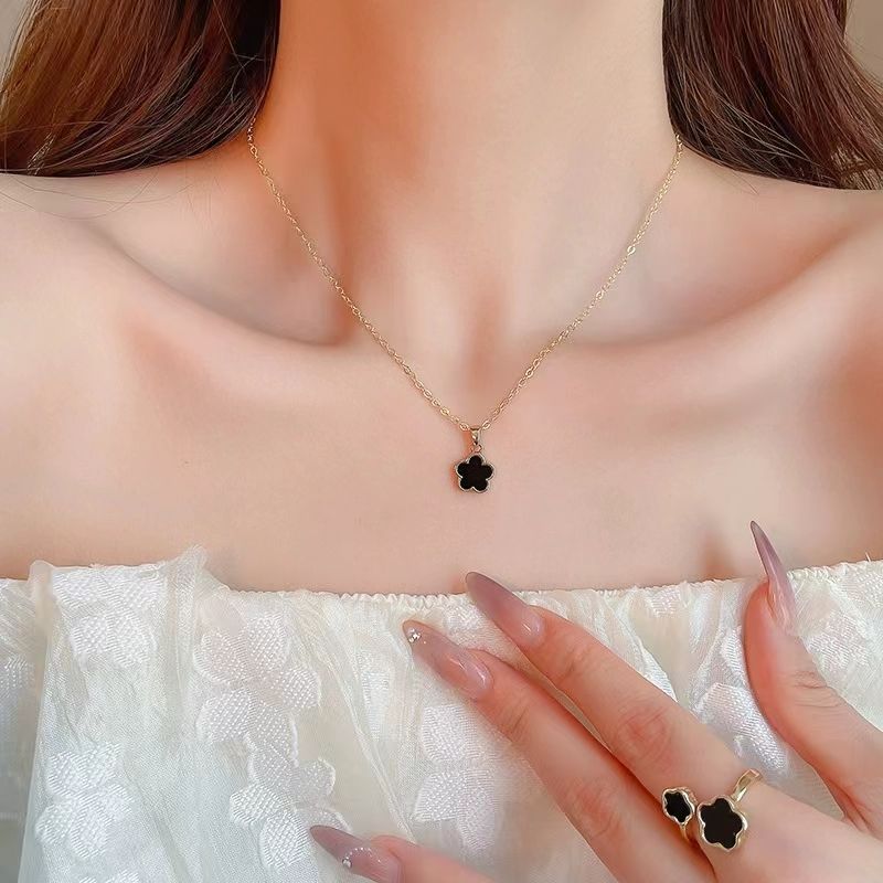 Wholesale 4PCS Fashion Women Five Petal Clover Flower Resin Jewelry Set Necklace Rings Bracelet Earrings