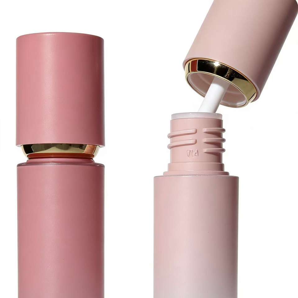 Tube de brillant à lèvres rose dégradé mat 4g en gros, contenant cosmétique en plastique givré vide avec bouchon à vis et applicateur