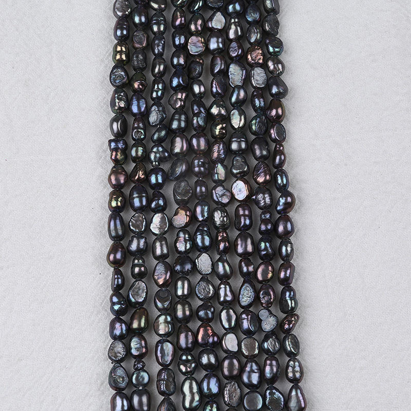Wholesale 5-6mm Black Two-Sided Glossy Natural Freshwater Pearl String Baroque Style DIY Jewelry Material Loose Pearls