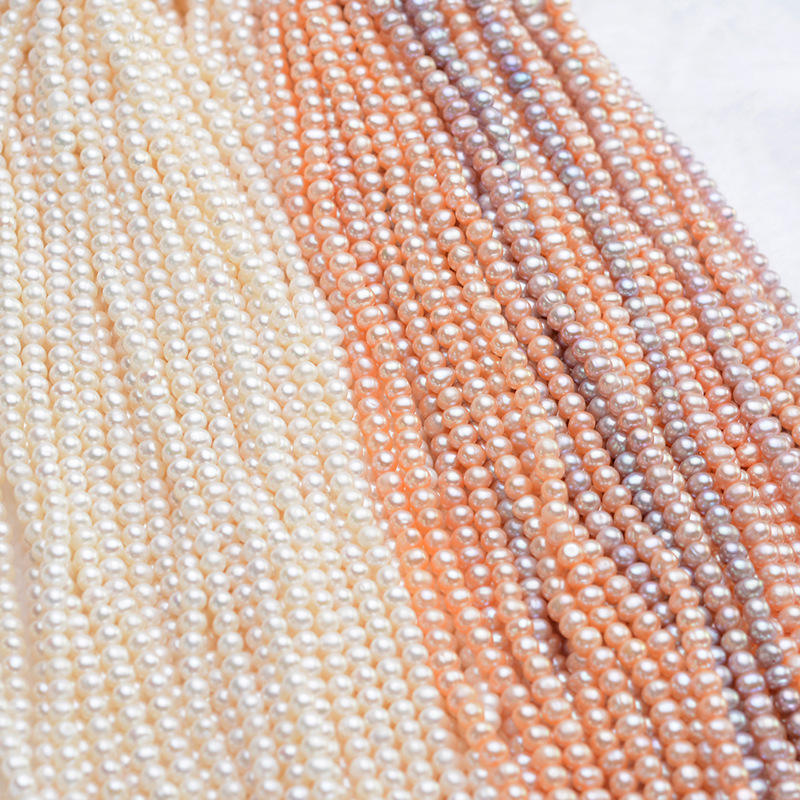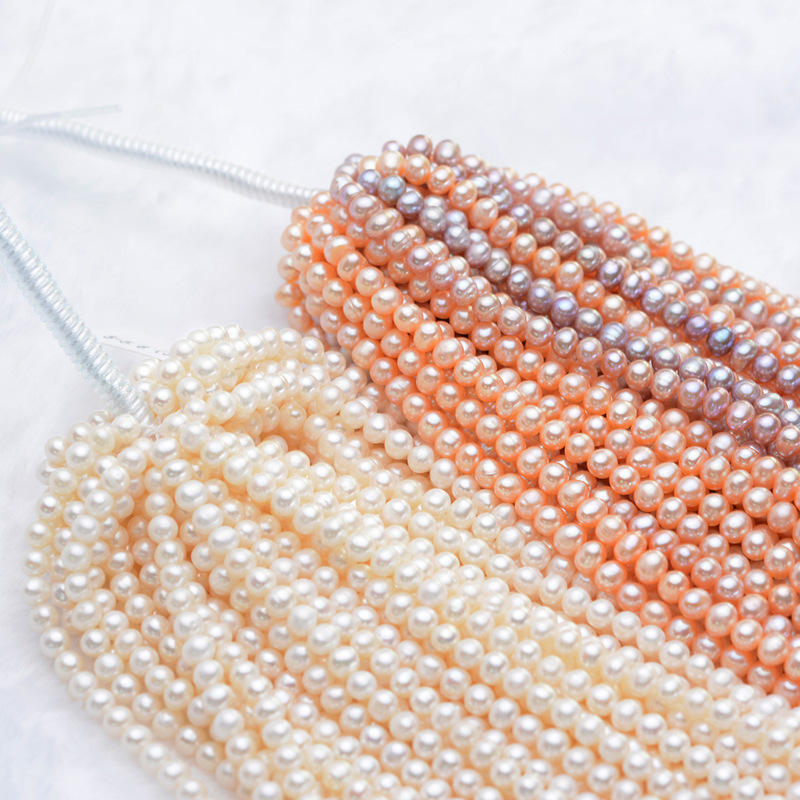 Wholesale 5-6mm Natural Freshwater Pearl Necklace Semi-Finished with Strong Light Near Circle White and Pink Loose Pearls