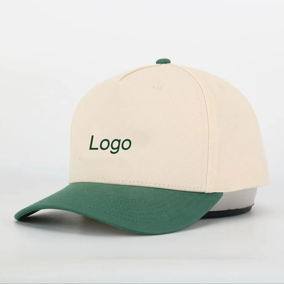 Casquette de baseball en coton à 5 panneaux en gros, deux tons, pour sports de plein air, avec logo brodé 3D et impression personnalisée