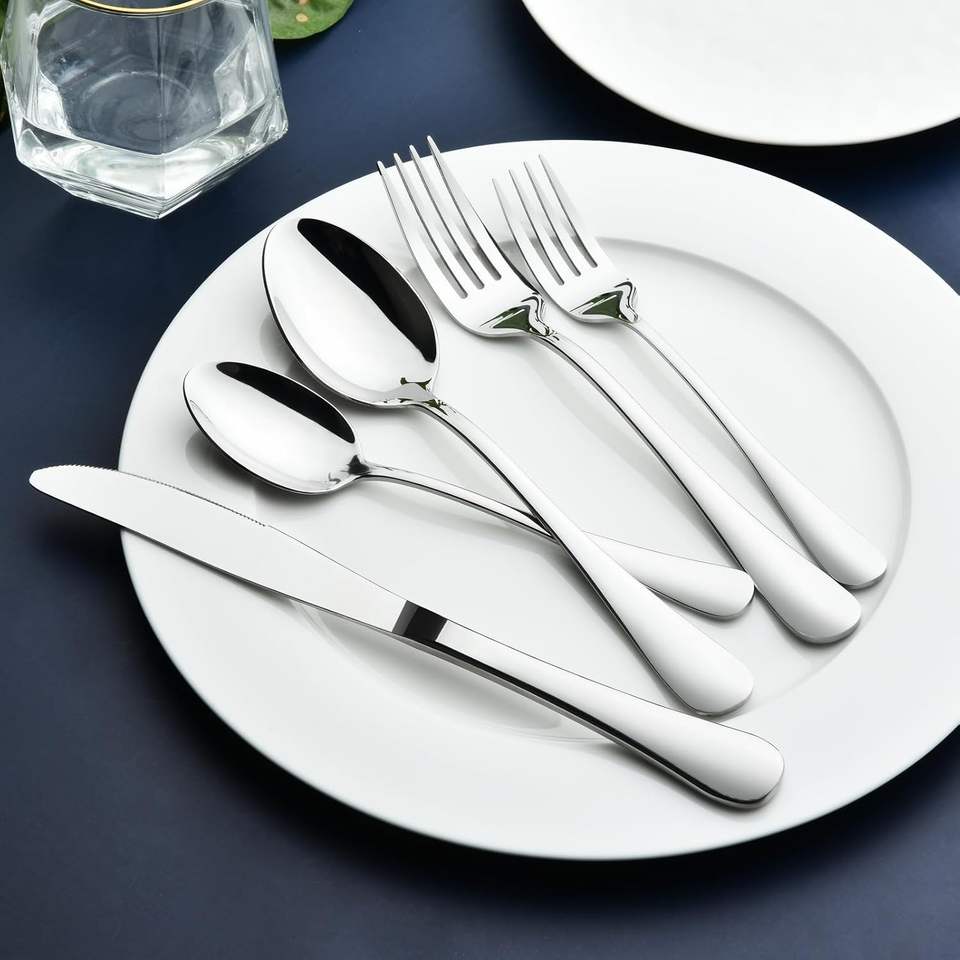 Vente en gros de 5 pièces de couverts de luxe argenterie plaquée 18/10 acier inoxydable couteau fourchette cuillère pour thé ensemble de couverts en acier miroir
