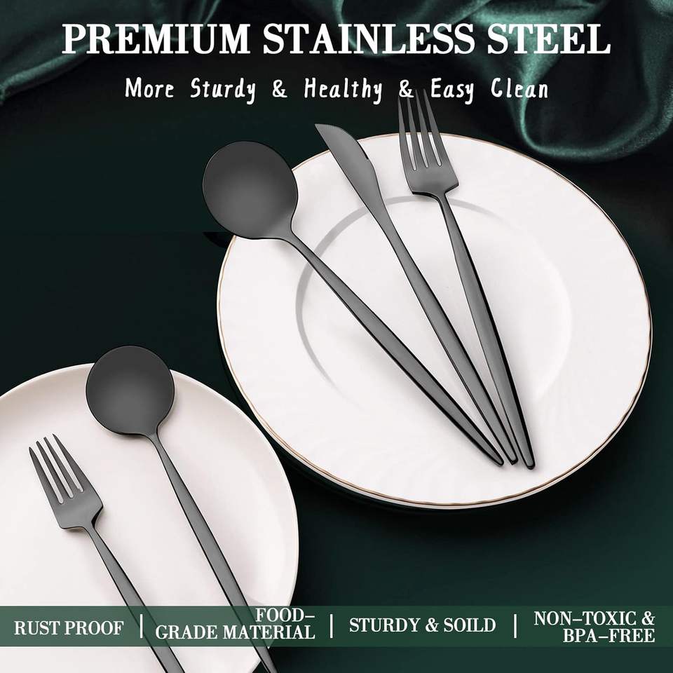 Wholesale 5 pcs Restaurant Black Flatware Stainless Steel German Cutlery Spoons Fork Knife Matte Black Portugal Cutlery
