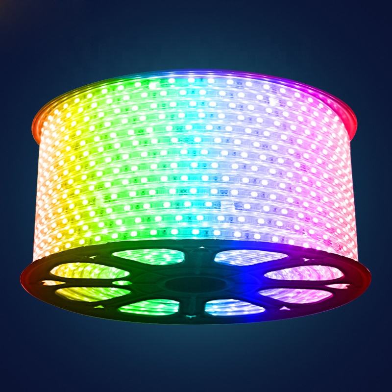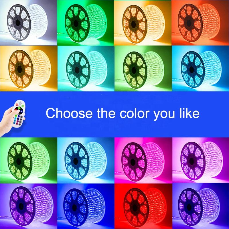 Wholesale 5050 RGB LED Strip Light 220V 60LED/M 100m/roll Flexible Waterproof PVC Body IP65 Rating 6000K Daylight Remote Control