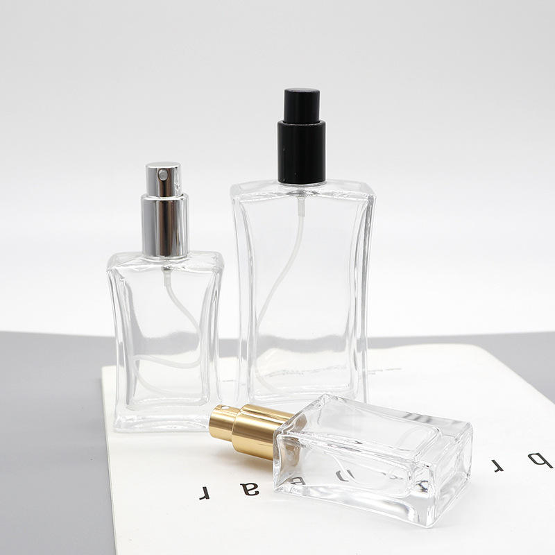 Flacons de parfum carrés en verre de 50 ml en gros, vides, cosmétiques, avec bouchon à vis, anti-fuite