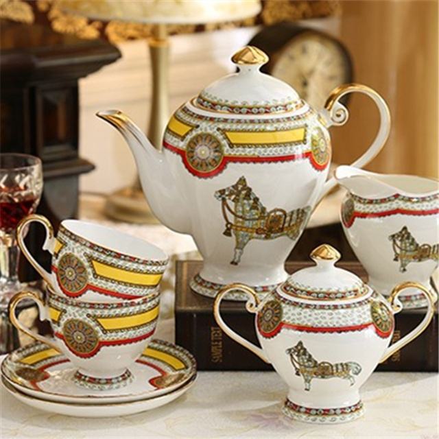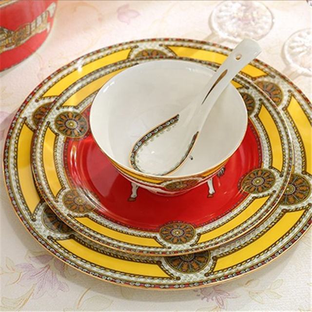 Wholesale 58 Pieces Western Luxury Dining Room Sets Red Horse Home Decors Fine Bone China Dinnerware Sets