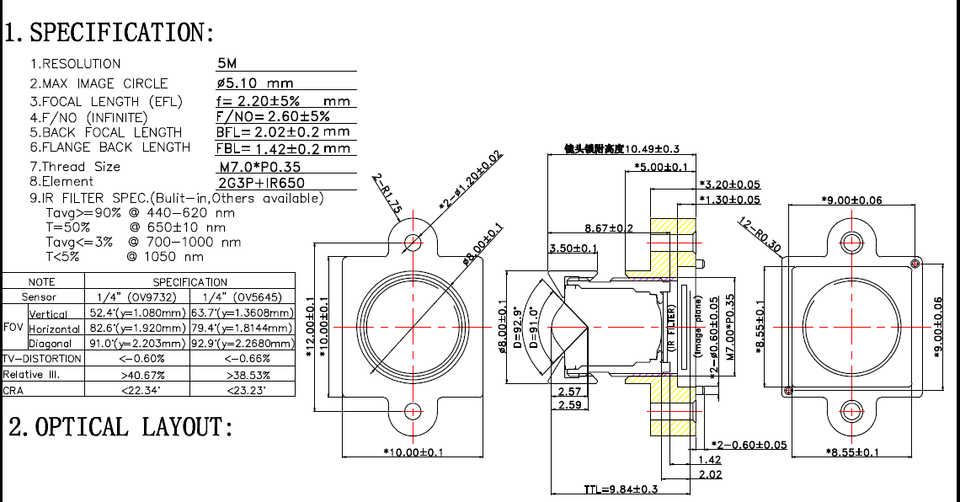 Longueur focale (mm):2.2