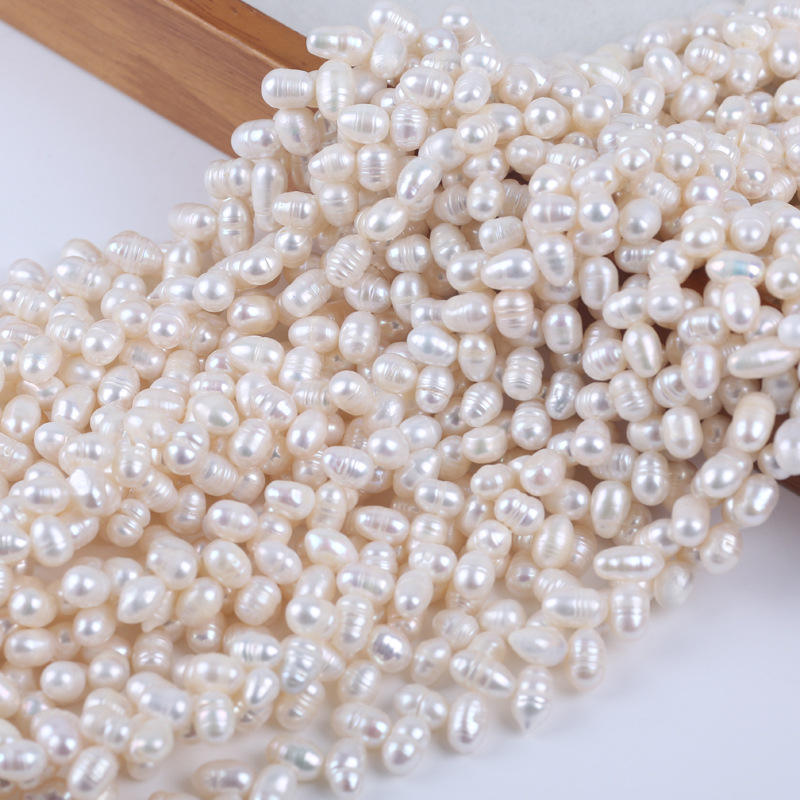 Perles d'eau douce naturelles en forme de riz de 6-7 mm en gros, accessoires semi-finis faits à la main pour collier et bracelet