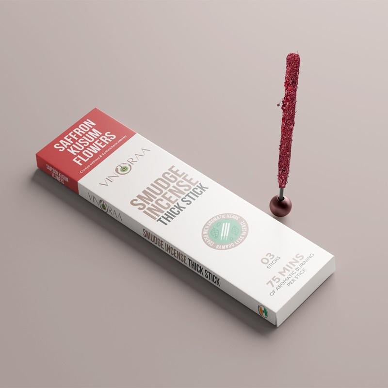 Vente en gros de bâtons d'encens au safran Kusum de 6 pouces avec des supports botaniques en bambou pour diffuseur d'aromathérapie