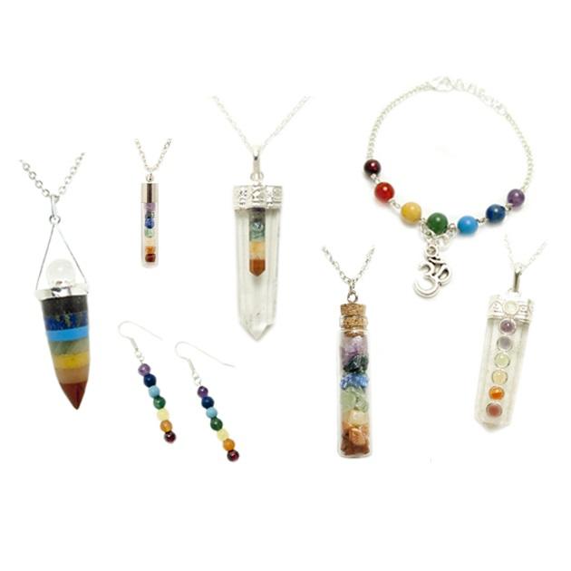 Pendentifs en cristal de quartz 7 chakras en gros, plaqués or rose, pendentifs en argent sterling pour unisexe
