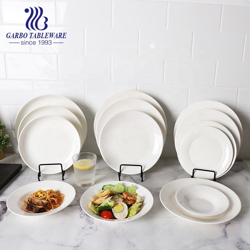 Vente en gros de vaisselle en porcelaine de 7 pouces pour hôtel et restaurant assiettes de cuisson à pizza rondes blanches en céramique à prix compétitif