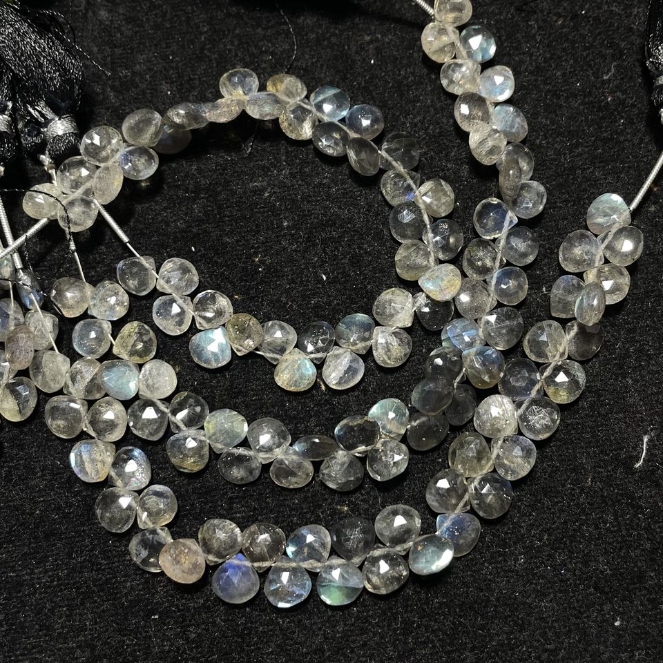 Vente en gros de perles briolettes en forme de cœur à facettes en Labradorite de 7mm perles de pierre calibrées de la boutique de perles