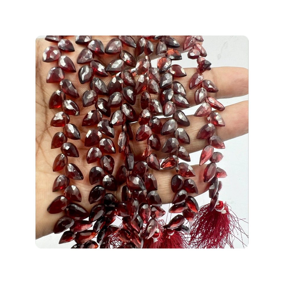 Vente en gros de grenat rouge naturel de haute qualité de 8 pouces Briolette à facettes poire gouttes motif perlé fabrication de bijoux pierre taille 6-7mm